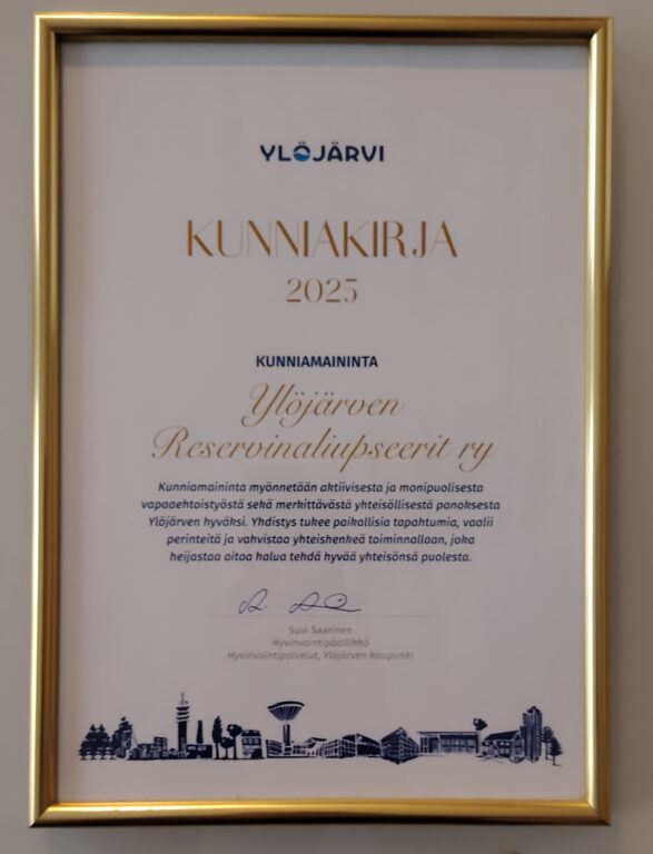 Kunniamaininta Ylöjärven Reservinaliupseerit ry:lle: